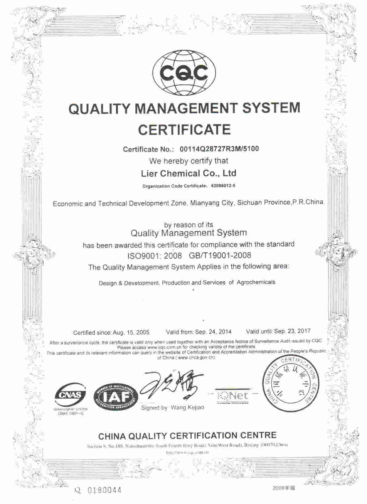 四川利爾作物科學有限公司是利爾化學股份有限公司(股票代碼:002258)控股的全資子公司,從事化學農藥制劑等農業植保產品的研制開發、制劑加工、推廣銷售、技術咨詢與服務,是國家發改委核準的農藥生產定點企業。